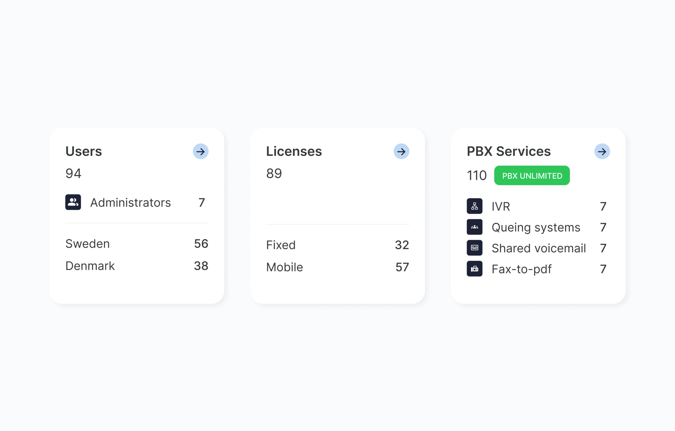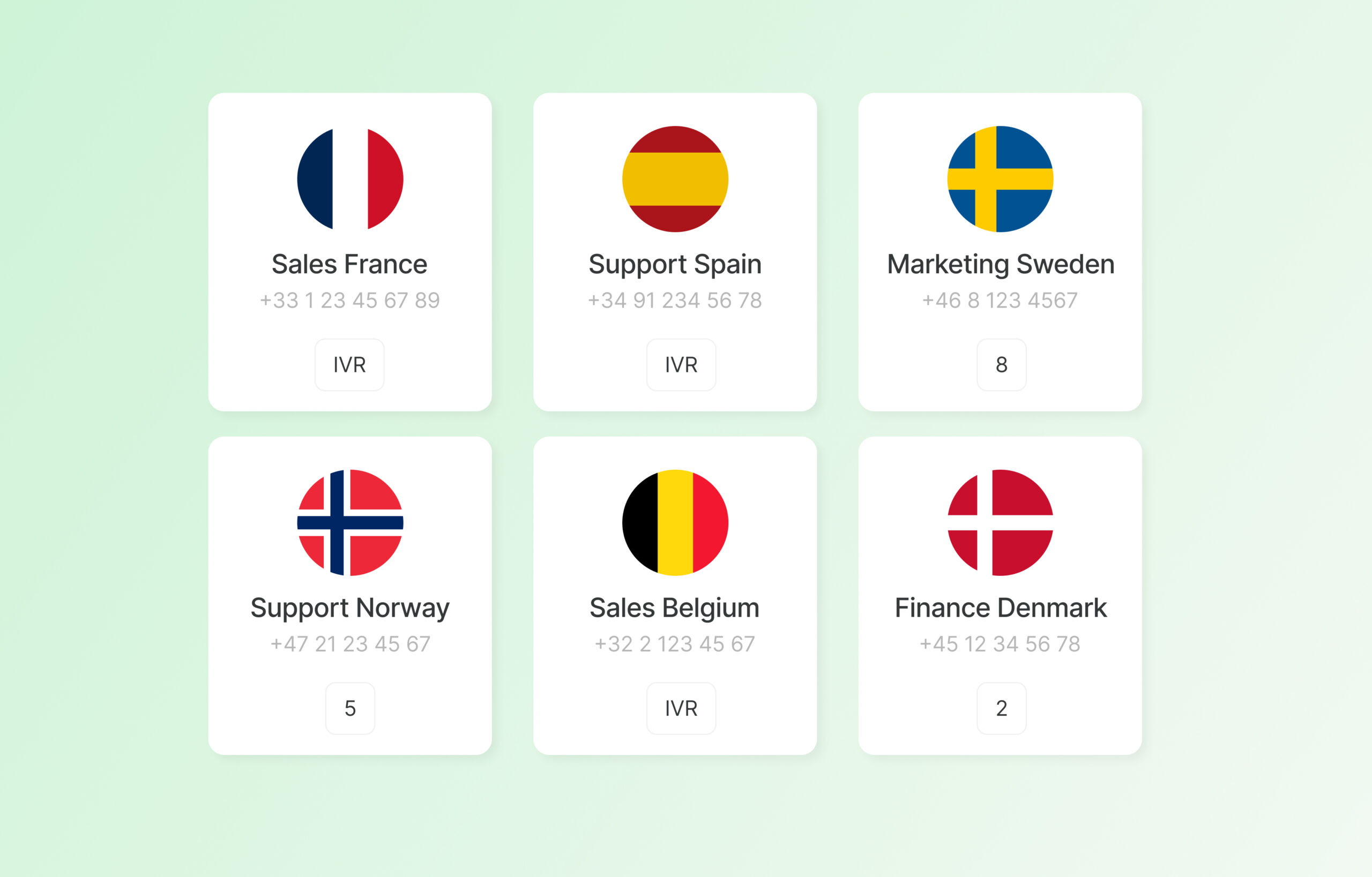 Cela semble passionnant, et nous serions ravis de vous accompagner dans votre démarche ! Grâce à la flexibilité de nos services, vous pouvez facilement augmenter ou réduire vos effectifs en fonction de vos besoins. Nous proposons des forfaits de téléphonie mobile en Belgique, en Suède, au Danemark, en Norvège et en Finlande. Pour les bureaux situés en dehors de ces pays, vous pouvez ajouter des numéros internationaux et consolider toute votre téléphonie dans un seul service PBX – afin de maintenir une solution de communication fluide et cohérente, quelle que soit votre croissance.