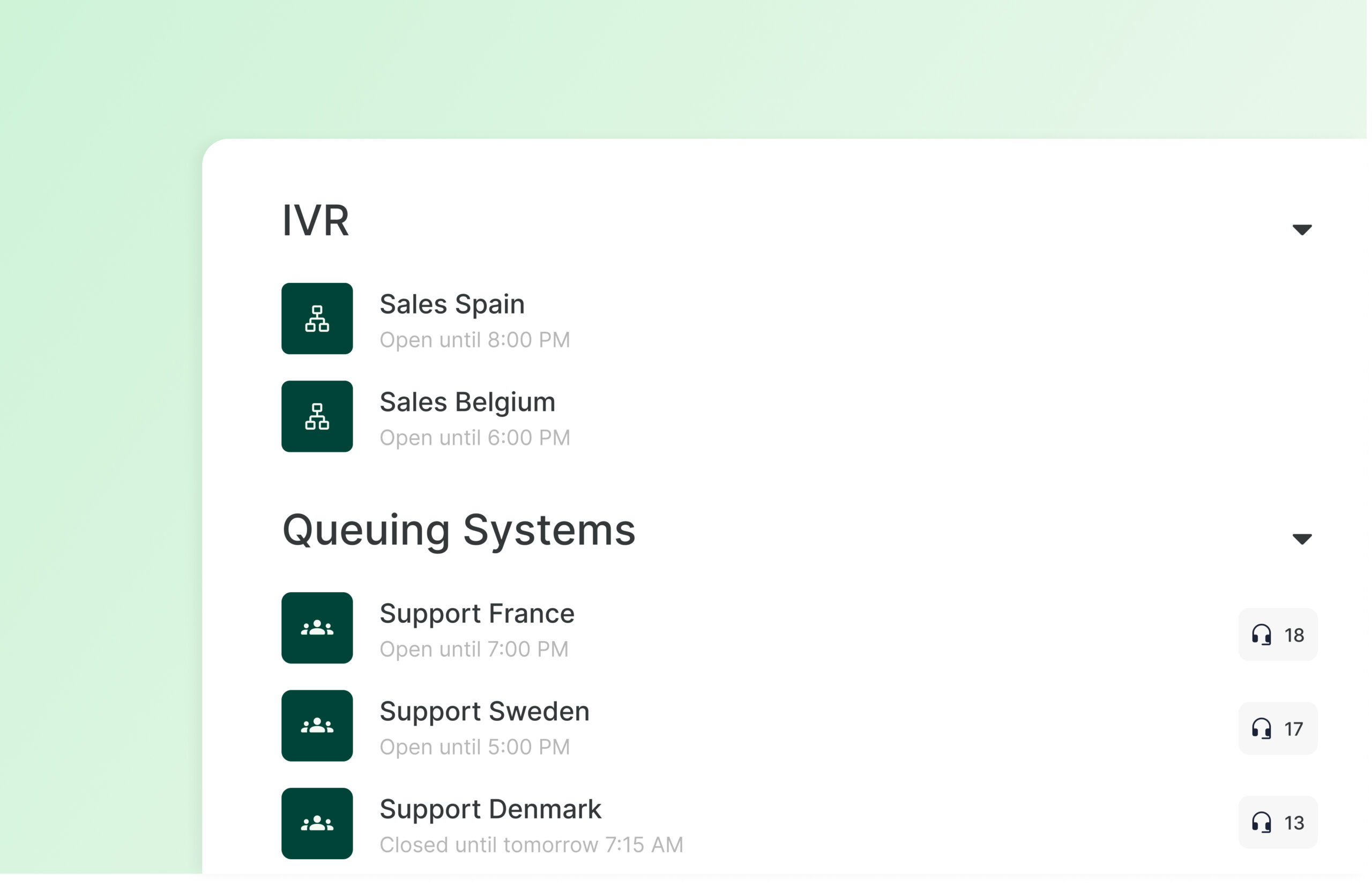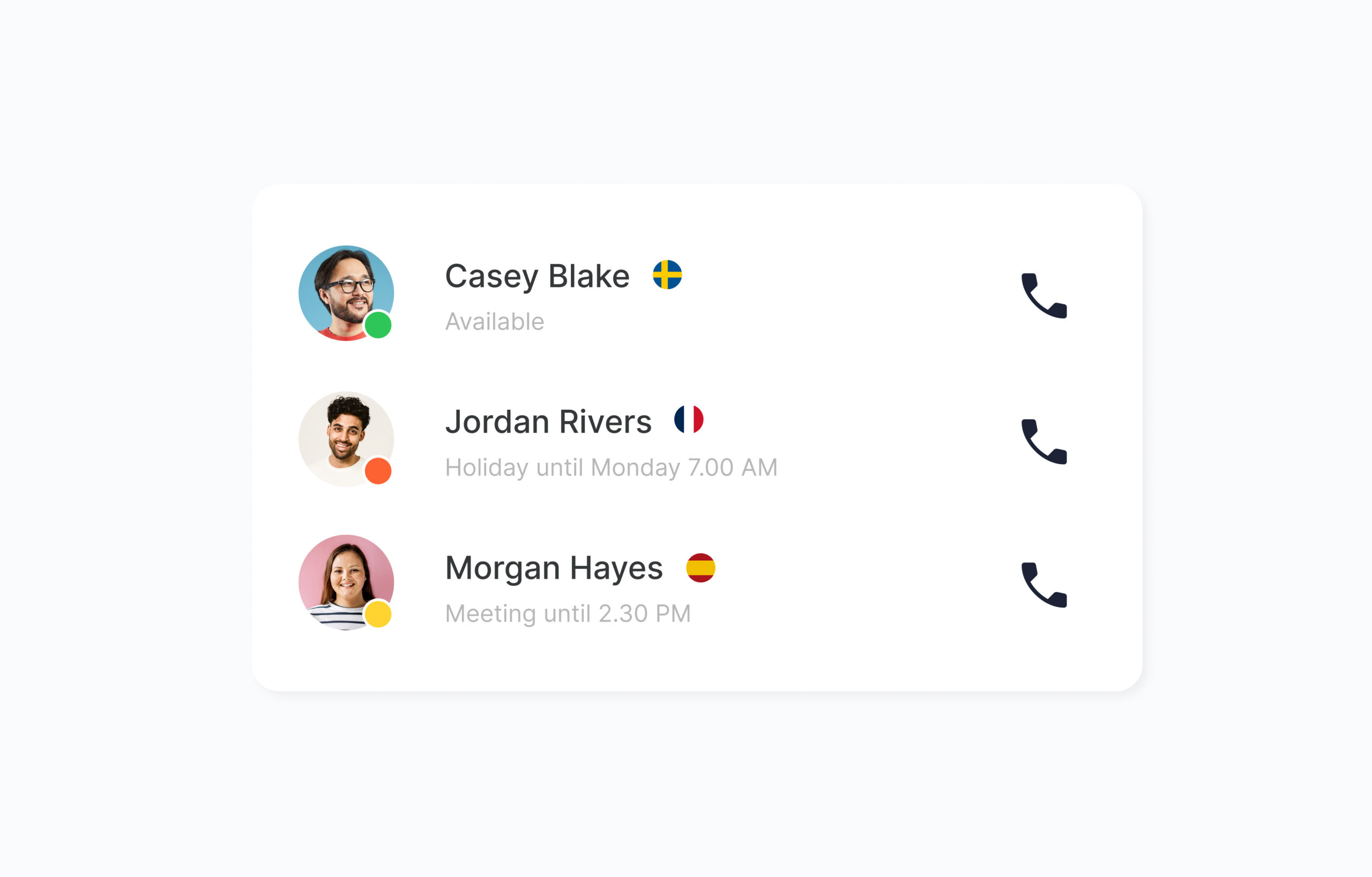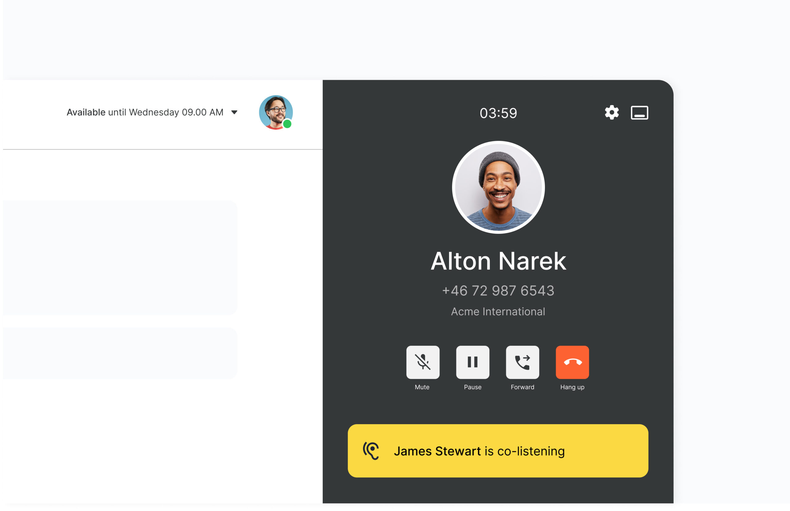 Avec nous, vous pouvez facilement collaborer au-delà des frontières. Vous pouvez faire partie de la même plateforme de téléphonie dans plusieurs pays, transférer des appels entre vous, écouter et coacher pendant les appels.