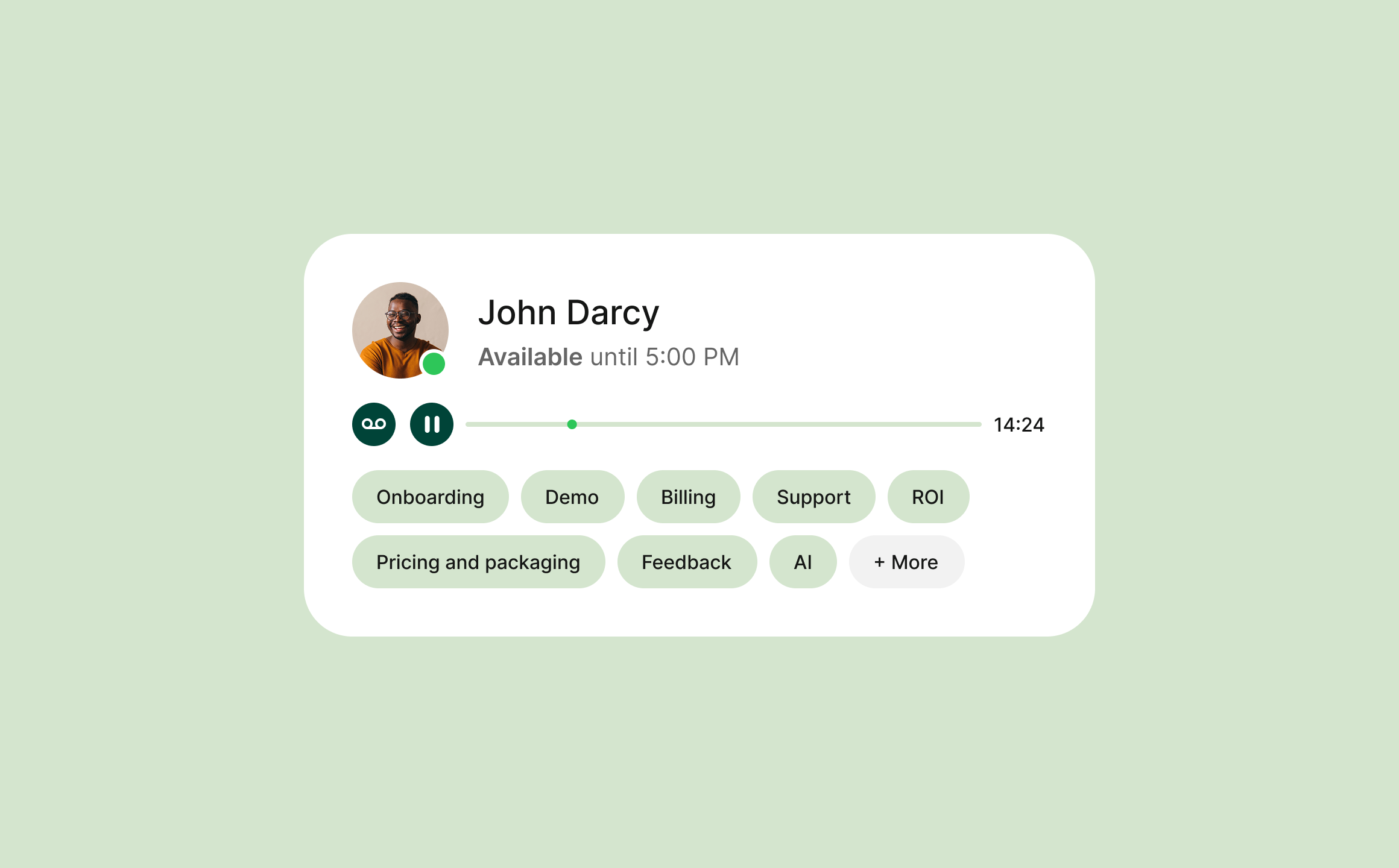 Comprenez rapidement de quoi traitait chaque appel sans avoir à l’écouter après coup. Grâce à l’analyse automatique des sujets, Telavox identifie les sujets et domaines les plus importants abordés pendant l’appel. Cela permet de catégoriser, de prioriser et d’assurer le suivi des appels de manière efficace en fonction du contenu, qu’il s’agisse de support, de ventes ou de conseils.