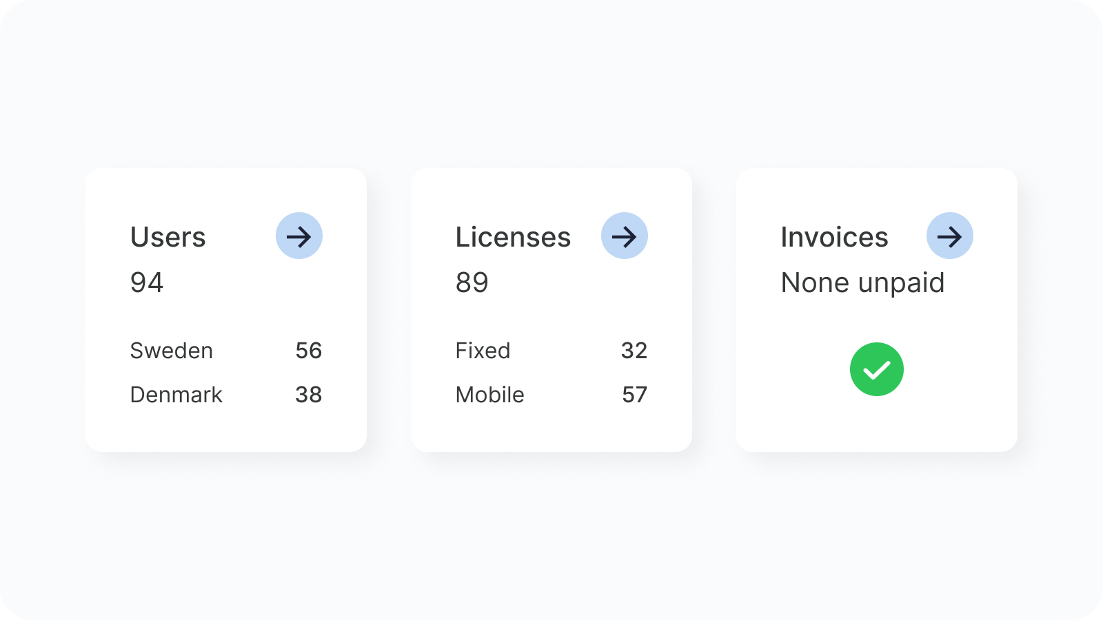 Dans notre portail d’administration, vous avez accès à toutes vos factures. Pour les administrateurs, il est simple de déplacer des utilisateurs, des services et des produits entre différents centres de coûts et de facturation. Dans le portail d’administration, vous obtenez une vue d’ensemble de tous les coûts et pouvez rapidement voir si une facture est payée, par exemple.