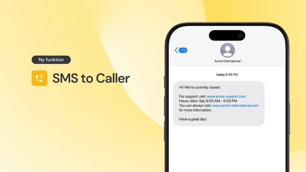 Nous lançons enfin « SMS à l’appelant », une fonctionnalité qui envoie automatiquement des SMS aux clients qui appellent. Partagez rapidement des informations importantes directement depuis votre file d’attente téléphonique et réduisez les temps d’attente.