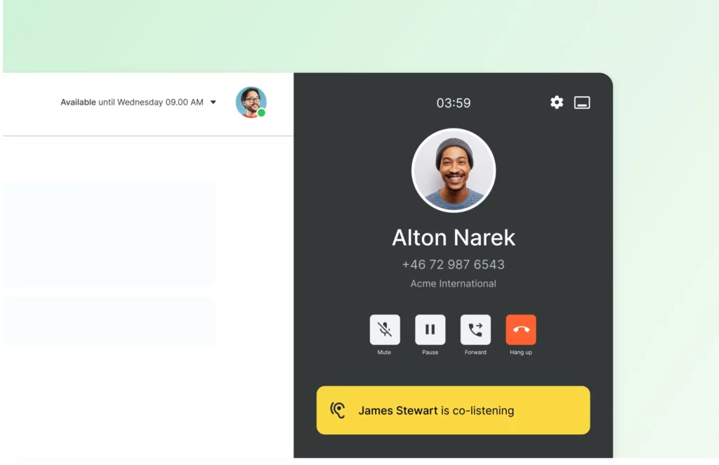 Vous collaborez facilement avec vos collègues. Transférez les appels entre vous, écoutez et coachez pendant les appels. Chattez, partagez des nouvelles et travaillez sur des dossiers, le tout dans la même application simple sur votre ordinateur ou votre mobile. C’est vous qui choisissez.