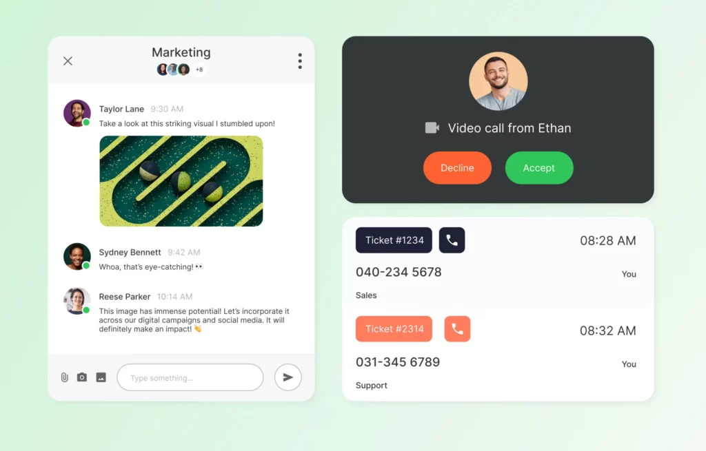 Vous collaborez simplement avec vos collègues. Transférez les appels entre vous, écoutez et coachez pendant les appels. Chattez, partagez des nouvelles et travaillez sur des dossiers, le tout dans la même application simple sur votre ordinateur ou votre mobile. C’est vous qui choisissez.