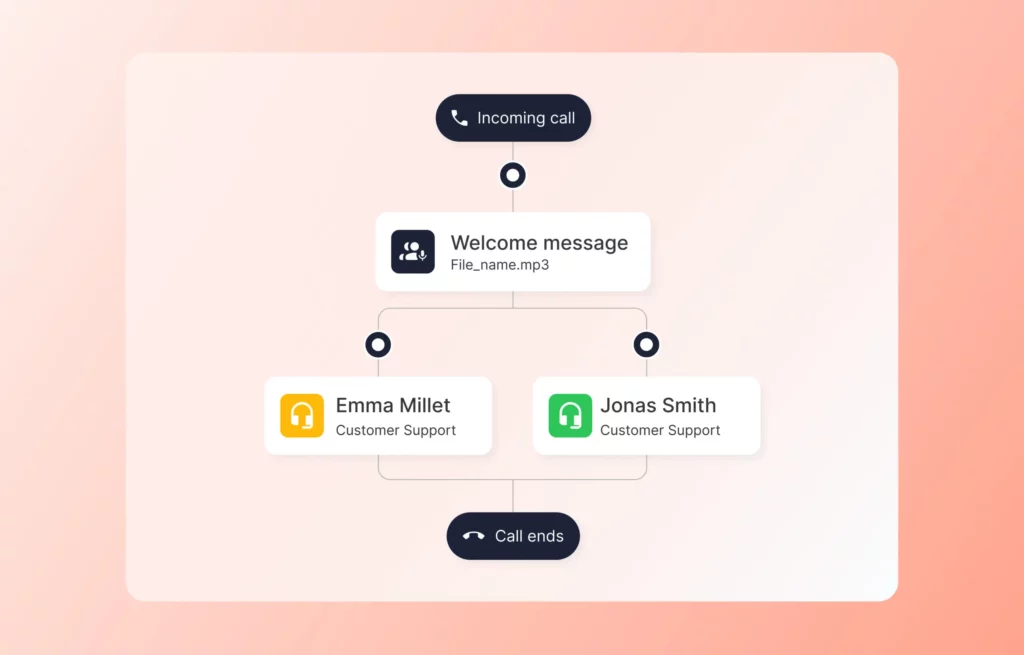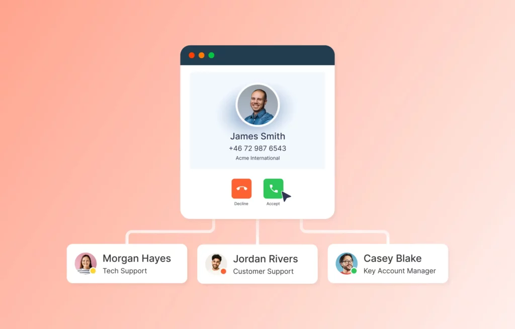 Les appels sont répartis efficacement entre les collaborateurs en fonction de leurs compétences et de leur disponibilité, ce qui garantit que chaque client reçoit la meilleure assistance possible directement.