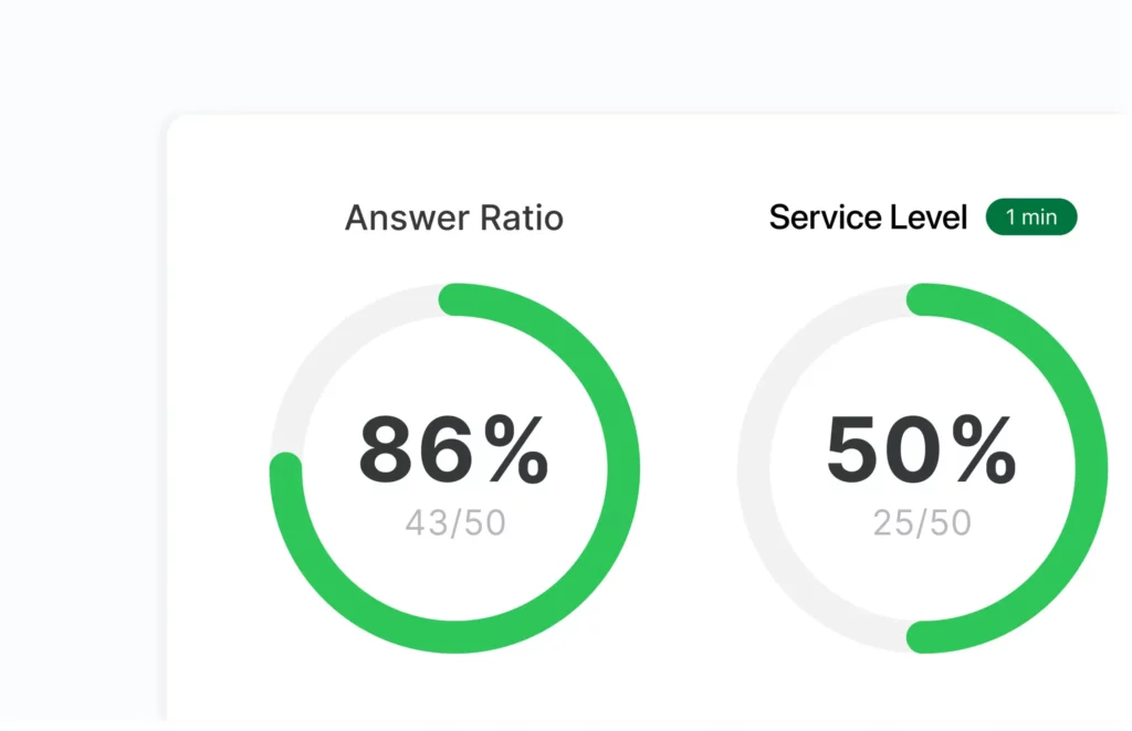 Vous avez accès à des statistiques en temps réel qui vous aident à optimiser l’efficacité. Suivez les indicateurs clés de performance tels que les niveaux de service, le temps de réponse moyen et les appels sans réponse, et effectuez des ajustements directement pour améliorer l’expérience client et le flux de travail.